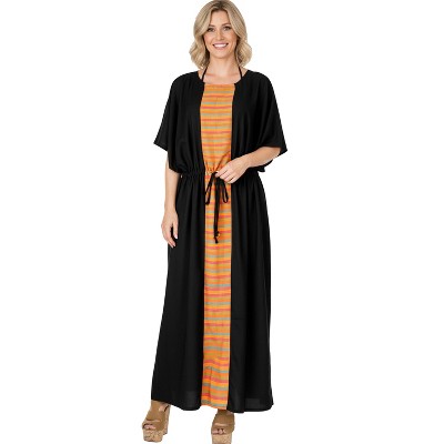 LA LEELA Women's House Daily Routine Evening Wear Vacation Casual Dailywear Holiday Loungewear Plus Size Caftan Maxi Boho Nightwear 2X-3X Black, Solid