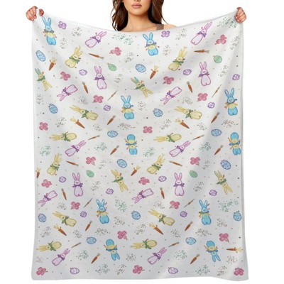 Easter Flannel Blanket Throw, Easter Eggs Plaid Bunny Rabbit Carrots Soft Fuzzy Plush Cozy Blankets for Couch Sofa Bed 30x40 inches