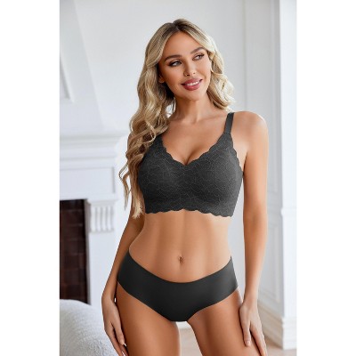 Avidlove Lace Bralette for Women Wireless Bralettes Non Padded Bralette V Neck Minimizer Lingerie Black S