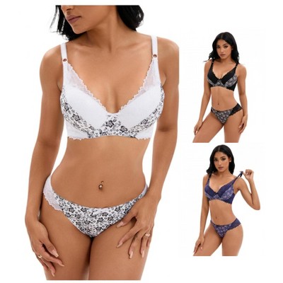 Allegra K Women's Underwire Breathable Lace Push Up 2 Pcs Bra and Underwear Sets 2 Packs