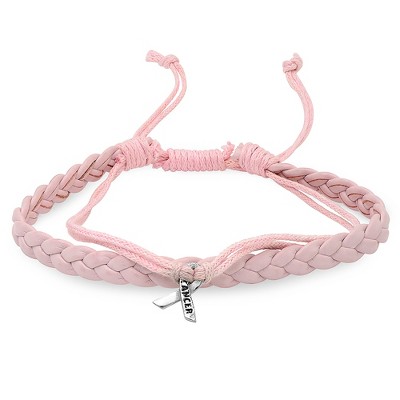 Steeltime Ladies pink leather bracelet with breast cancer stainless steel charms