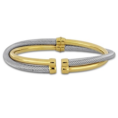 EVERLY JEWELRY | Two Tone Silver twisted white 2 row Hinge wide Bangle