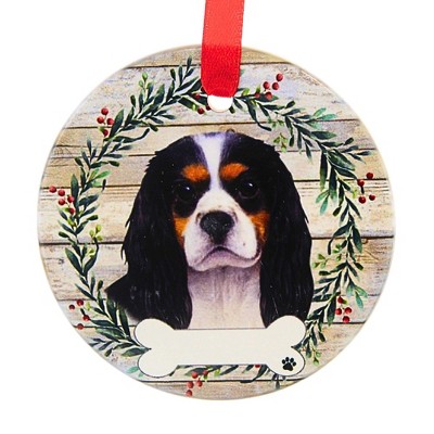 E & S Imports 3.5 Inch Ceramic Tri-Color King Charles Cavalier Ornament Christmas Tree Ornament , Christmas Decor Dog Puppy Ribbon Cherish Pet (1PC)