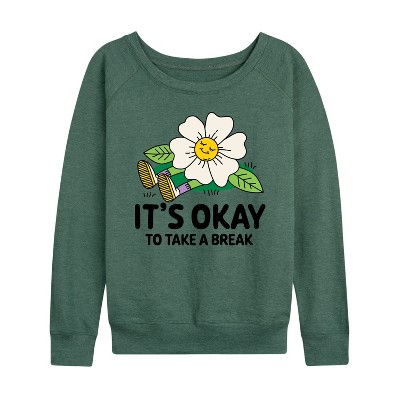 Women's - Instant Message - It's Okay To Take A Break Lightweight French Terry Wide Neck Long Sleeve Graphic Shirt