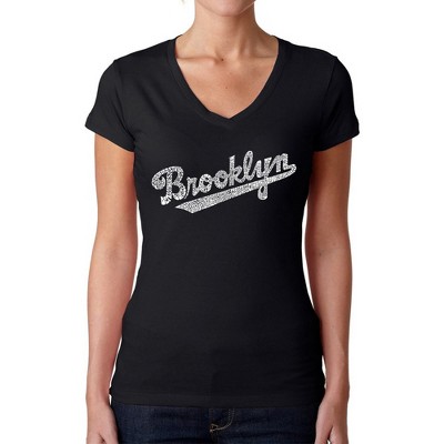 LA Pop Art Brooklyn Neighborhoods - Women's Word Art V-Neck T-Shirt
