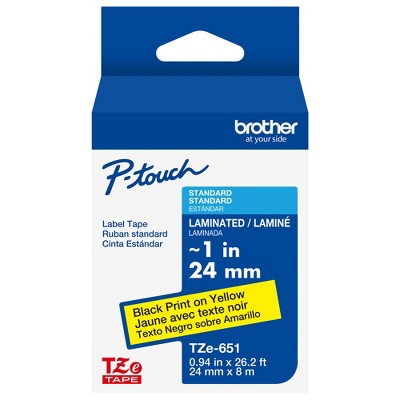 Brother P-Touch TZe651 Black on Yellow Label Tape: 1in x 26.2ft (24mm x 8m) Standard Adhesive Laminated Tape