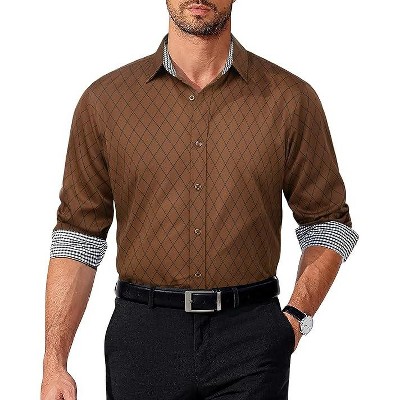 INSPIRE CHIC Women's Casual Pointed Collar Button Long Sleeve Plaid Shirt