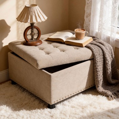 brown material ottoman