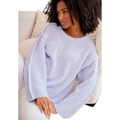 Ellos Stretch Boat Neck Whipstitch Pullover Sweater