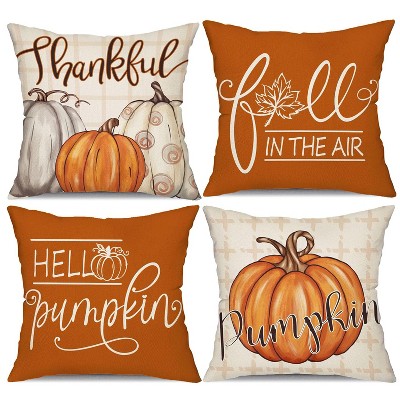 Lomsoe 4pcs Fall Throw Pillow Cover 18x18 Inch Buffalo Plaid Fall Pumpkin Outdoor Throw Pillow Cover Autumn For Home Couch Throw Pillow Cover