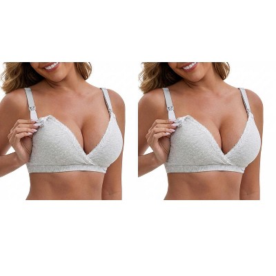 INSPIRE CHIC Women's Lace Trim Wireless Plunge Lift Up Nursing Bras Front-Cross Buckled Straps Back Hooks Nursing Bra 2 Packs
