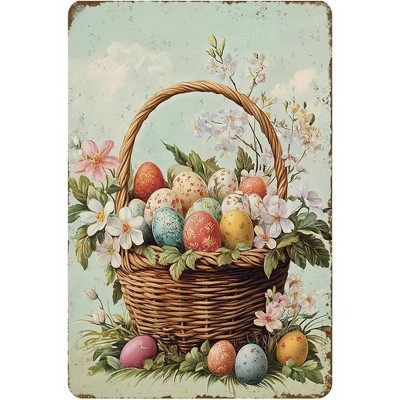 Lomsoe Easter Rabbit Eggs Metal Sign Vintage Eggs Wall Art Tin Sign Easter for Home Room Farmhouse Wall Decor Happy Easter Sign Easter Decor 8x12 Inch
