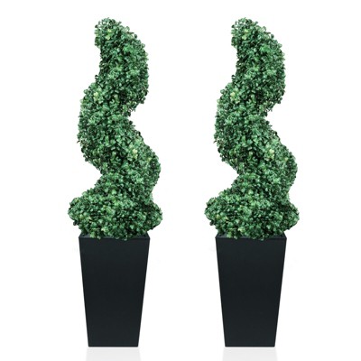 Vitalismo 2-Pack 3/4/5ft Artificial Spiral Boxwood Topiary Trees UV Resistant Outdoor/Indoor Faux Boxwood Plants in Planter for Front Door,Porch,Patio