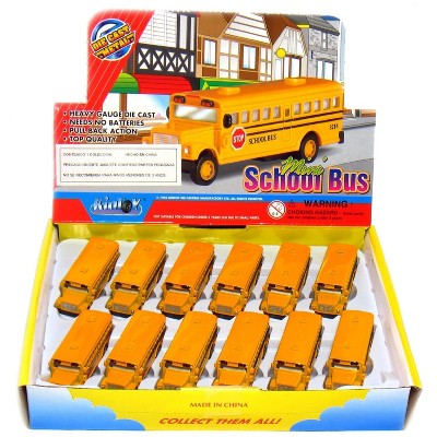 KiNSFUN Classic Long Nose School Bus 2.5" Die Cast Metal w/ Pull Back Action 12 Pack