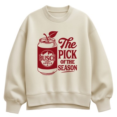 Women's Busch Apple Can Oversized Fleece Crew Sweatshirt - Cream - 2 X-Large