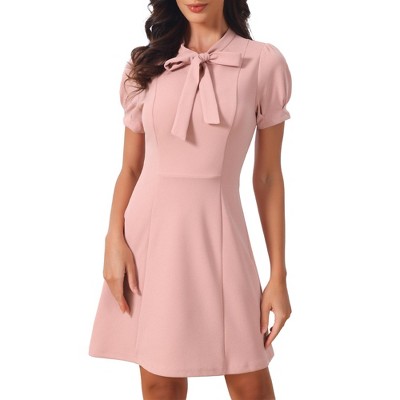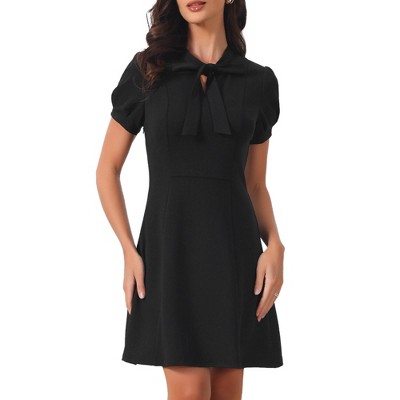 INSPIRE CHIC Elegant Women's Work Tie Neck Puff Short Sleeve Business Office Short Dress