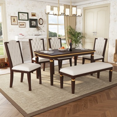 Merax Elegant 6-Piece Dining Set with Tufted High-Back Chairs & Bench
