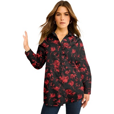Roaman's Plus Size Kate Long Sleeve Easy Cotton-Blend Button-Front Shirt