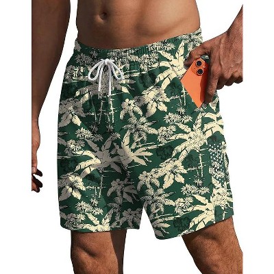 INSPIRE CHIC Men's Summer Printed Stretch Waist Surfing Swimming Shorts 2 Packs