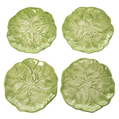Transpac Set of 4 Multicolored Ceramic Cabbage Appetizer Plates Perfect for Easter Dining and Spring Celebrations