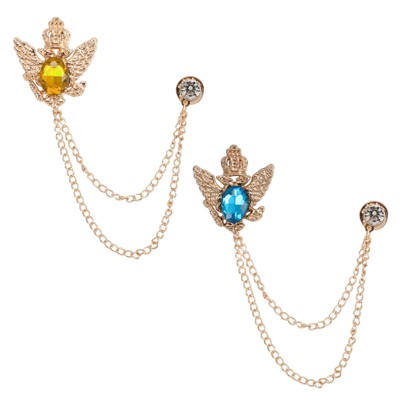 Unique Bargains Vintage Crown Hanging Chain Brooch Pins, Animal Tassel Gem Chain Brooch Pin Double Wings Lapel Pins