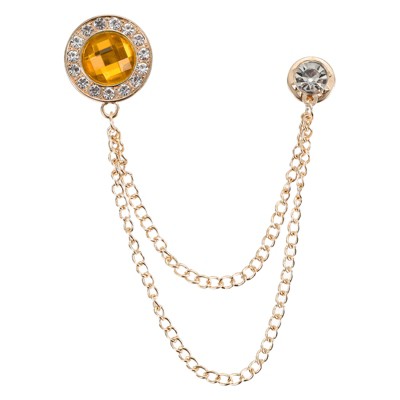 Unique Bargains Gem Chain Brooch Pins, Hanging Chain Brooch Suit Pin Tassel Chain Round Crystal Badge Lapel Collar Pins