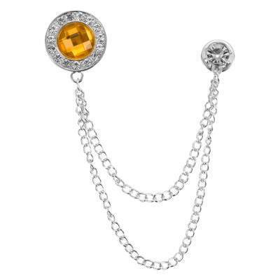 Unique Bargains Gem Chain Brooch Pins, Hanging Chain Brooch Suit Pin Tassel Chain Round Crystal Badge Lapel Collar Pin