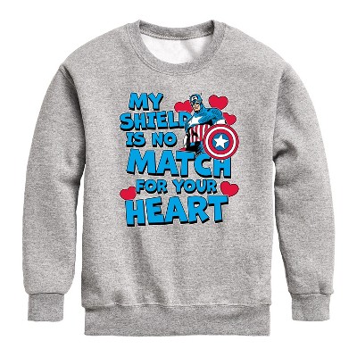 Boys' Captain America My Shield Cap Graphic Long Sleeve Fleece Sweatshirt - Athletic Heather - Small