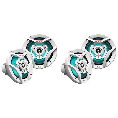 JVC 6.5" Marine Speakers 4 Pack RGB LED Coaxial Boat Speakers White Grille Pontoon Marine Audio System Upgrade