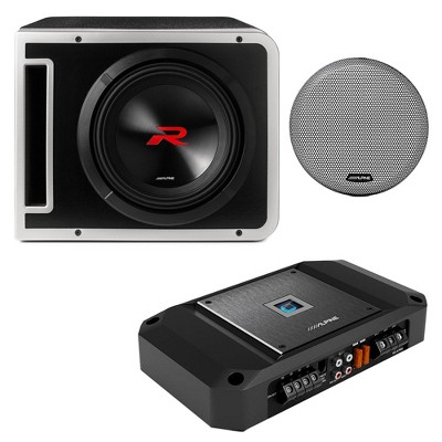 Alpine R-SB10V Pre-Loaded R-Series 10-inch Subwoofer Enclosure, Alpine R-A75M 750 Watt Mono Amplifier, and Wiring Kit