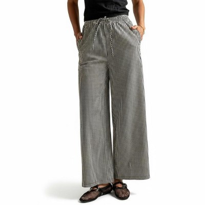 Anna-Kaci Women's Wide Leg Lounge Pants with Soft Stretch Fabric, Elastic Gingham Waistband and Adjustable Drawstring Fit