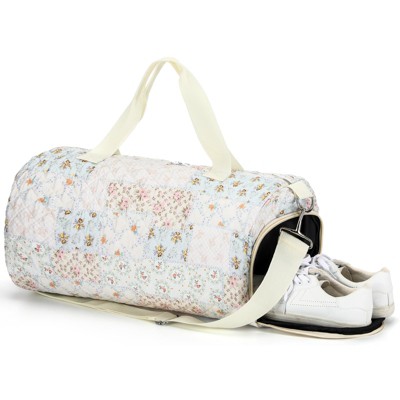 Narwey Spliced Floral Quilted Duffle Bag for Women Cotton Dance Bag with Adjustable Carry Strap