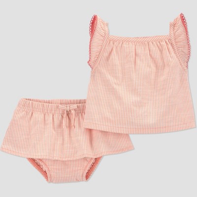 Carter's Just One You® Baby Girls' 2pc Striped Tank Top and Peplum Bloomer Set - Orange