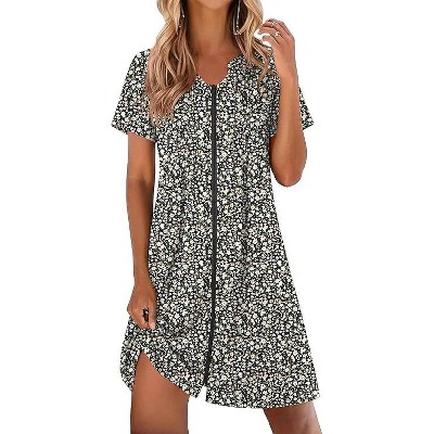 Ekouaer Women Zipper Robes Short Bathrobe Lightweight Mumu Duster House Coat with Pockets Soft Moo Moo Nightgown