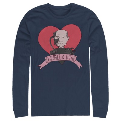Men's Star Trek: The Next Generation Valentine's Cartoon Borg Picard Heart Resistance Is Futile Long Sleeve Shirt