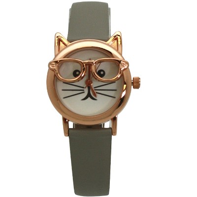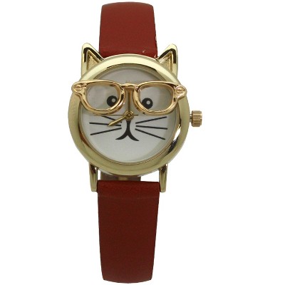 OLIVIA PRATT CAT FACE LEATHER STRAP WATCH