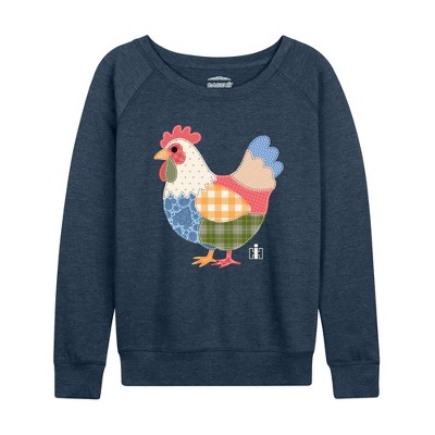 Women's - Case IH - Patchwork Chicken Lightweight French Terry Wide Neck Long Sleeve Graphic Shirt
