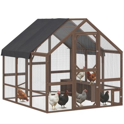 PawHut Large Wooden Chicken Coop for 8-10 Hens, Walk-in Chicken Run with Waterproof Cover, Nesting Boxes and Perches