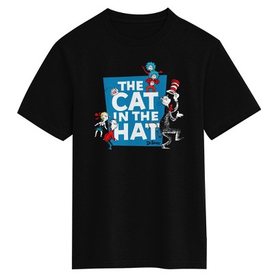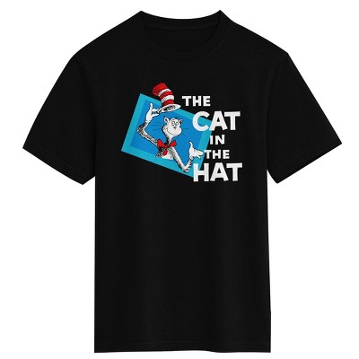 The Cat In The Hat Character Title Art Youth Black Crew Neck Short Sleeve T-shirt