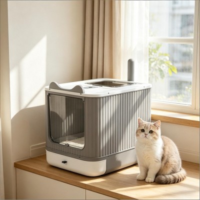 Litter Box with Slide-Out Tray, Enclosed Design Cat Litter Box, for Small-Medium Cat