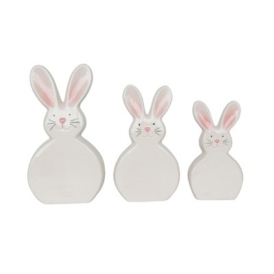 Transpac Ceramic 11.25 in Slim Funny Bunnies Decor Set of 3 for Easter Decorative Objects in Dolomite