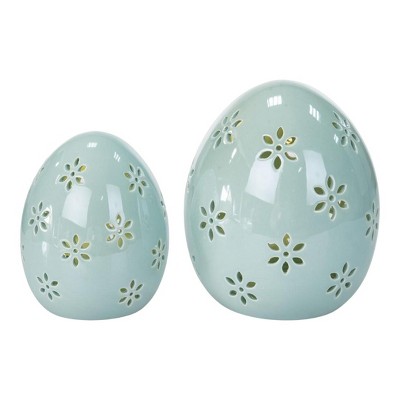 Transpac Ceramic Light Up Easter Egg Set of 2 Decorative Home Decorations for Easter