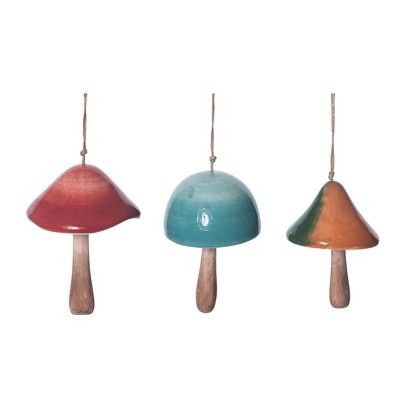 Transpac Ceramic Small Mushroom Bell Set of 3 Spring Home Decorations Decorative Objects for Unique Decor