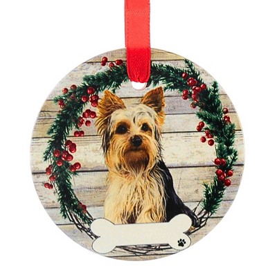 E & S Imports 3.5 Inch Ceramic Yorkie Ornament Christmas Tree Ornament , Dog Puppy Ribbon Cherish Pet (1PC)
