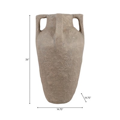 LuxenHome Antique Brown Cement Vase, Rustic Home Accent for Floor and Tabletops