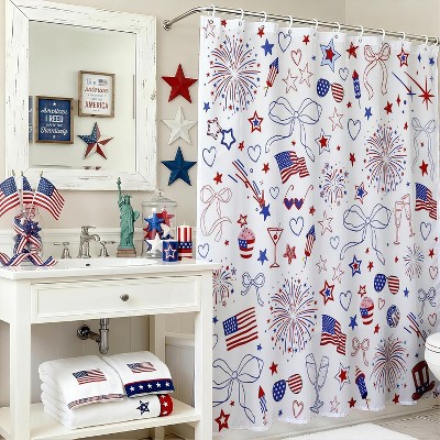 Lomsoe 4th of July Shower Curtain Farmhouse Independence Day Shower Curtains Red and Blue Bath Curtain Bath Decor Set with 12 Hooks 70.8x70.8Inch