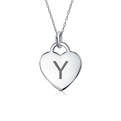 Bling Jewelry Tiny Minimalist Heart Shape A-Z Initial Pendant Necklace Sterling Silver