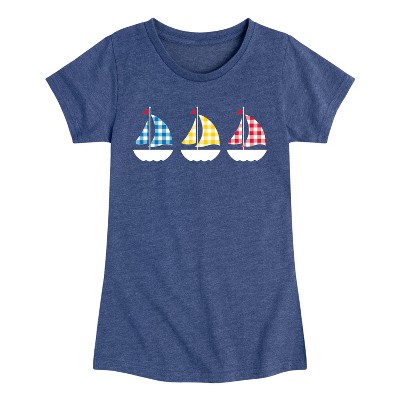 Girls' - Instant Message - Plaid Sailboats Fitted Short Sleeve Graphic T-Shirt
