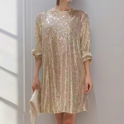 Coolmee Women's Sequin Mini Dress Boat Neck Fashion Shirt Dress Half Sleeve Loose Party Club Cocktail Dress