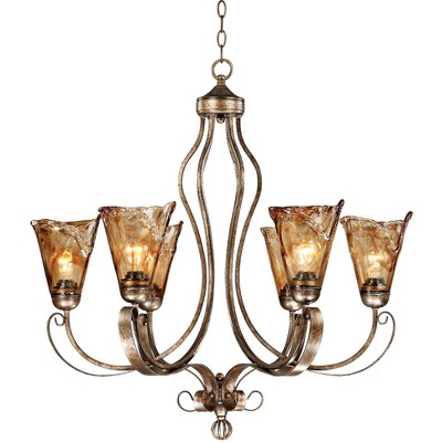 Franklin Iron Works Amber Scroll Golden Bronze Large Chandelier 31 1/2" Wide Rustic Art Glass 6-Light Fixture for Dining Room House Kitchen Island